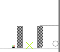 スリッグが移動ルートの右端(図中1)にいるときに足場の縁から△ジャンプで床に降り、そのまま忍び足で左の物陰に隠れてスリッグがエイブと重なり→物陰から出るのを待ちます。